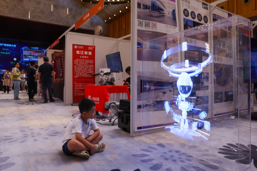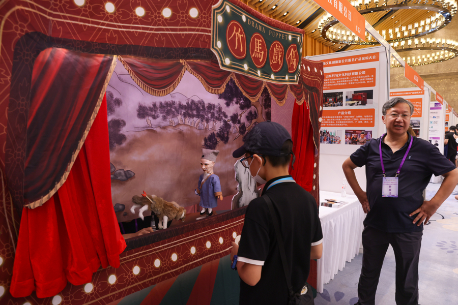 广富林文化遗址的三厅广场与国际文化交流中心人头攒动,一家家优质供应主体各展所长。松江联通带来的文旅数字人,吸引了不少人围观。通过智能导览,它能精准推送路线、讲解景点典故,让景区、展馆从单纯的游览空间,转变为兼具知识传递与情感共鸣的文化体验场。一旁,山东竹马文化科技有限公司的AI机器人偶也亮出绝活——以省级非遗“济南木偶戏”为基础,深度融合现代科技,创造出独具特色的智能演艺形式。